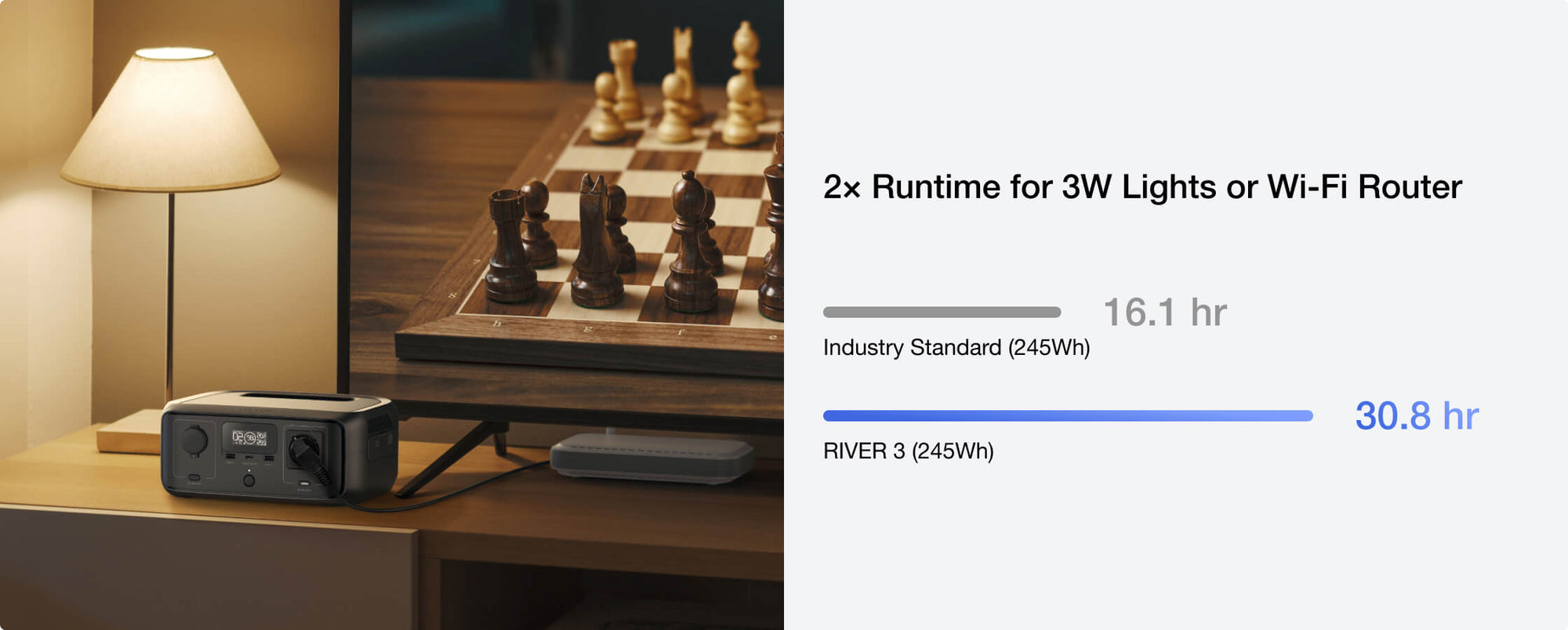 RIVER 3 revolutsiooniline energiatõhusus võimaldab pakkuda topelt tööaega alla 100W seadmetele, pikendades üldist kasutusaega.